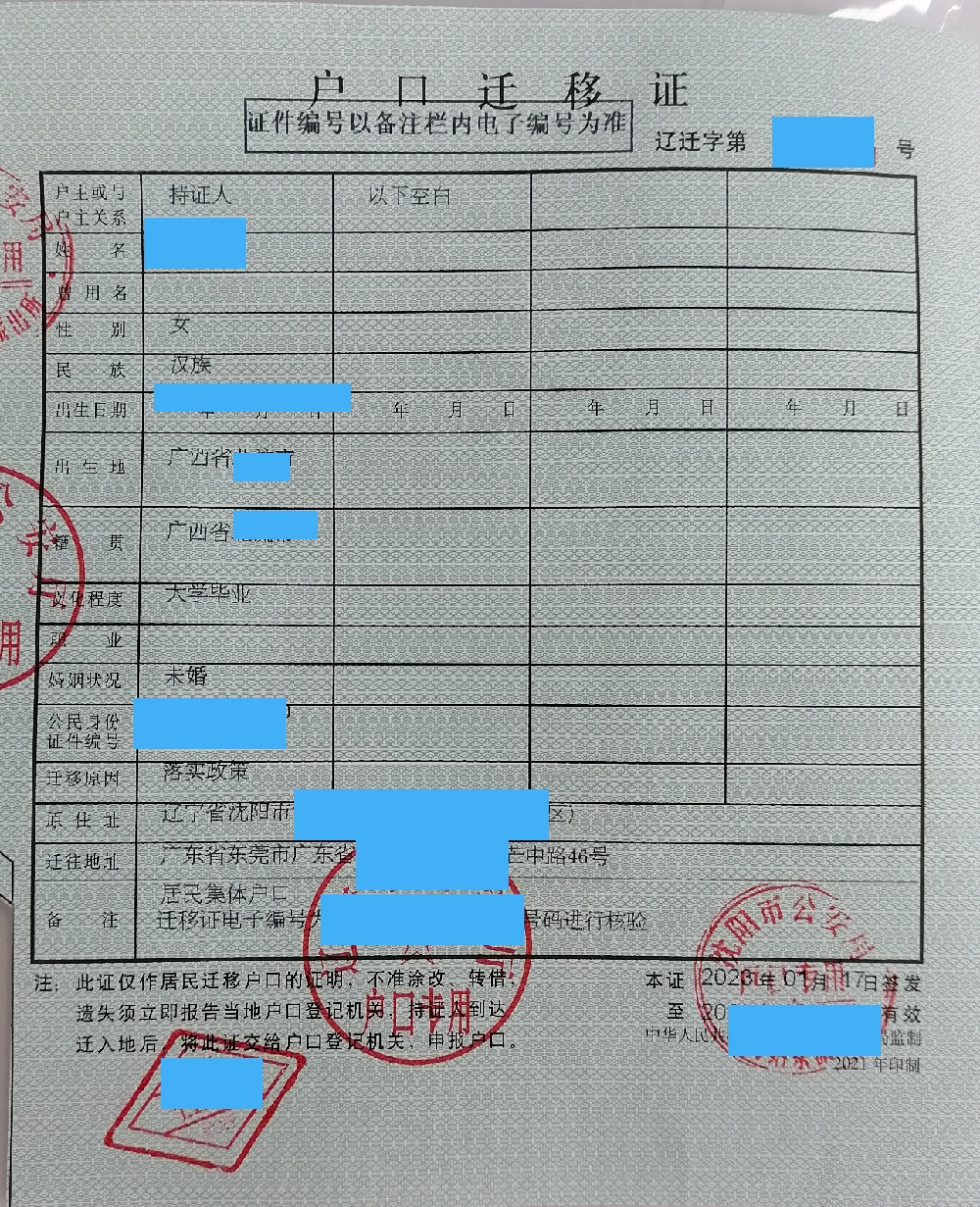 沈阳东软集体户口转出服务(浑河站东派出所),办理转出需提供落户地开具的准予迁入证明、原沈阳集体户口个人页及户口主页复印件等。