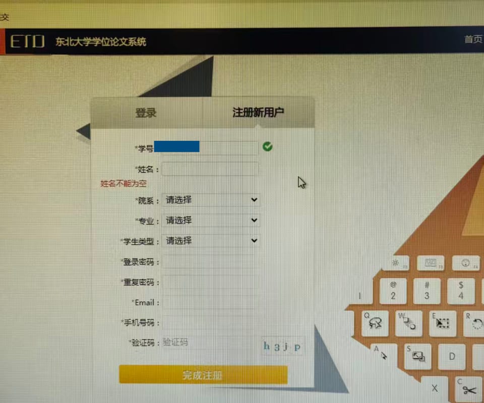 需注册并登录东北大学学位论文系统